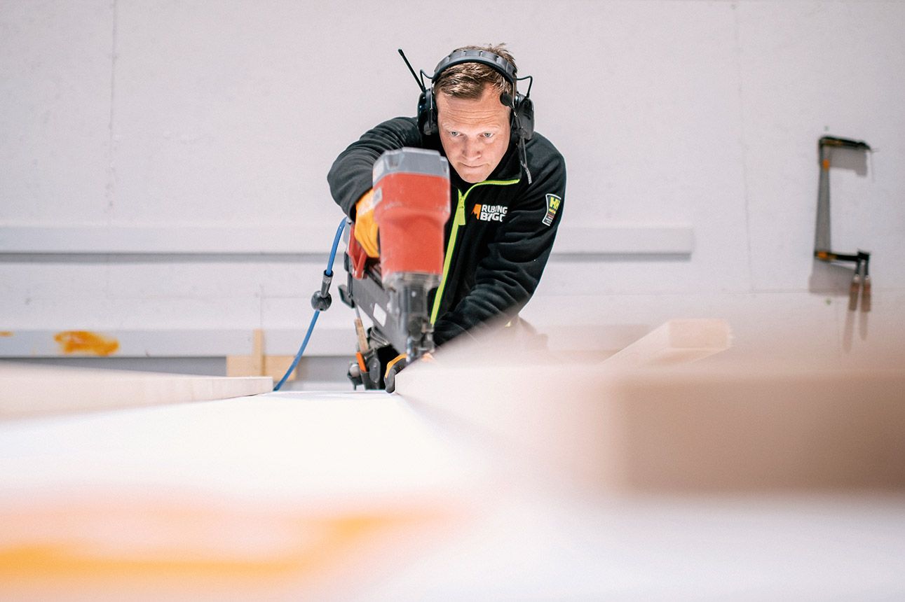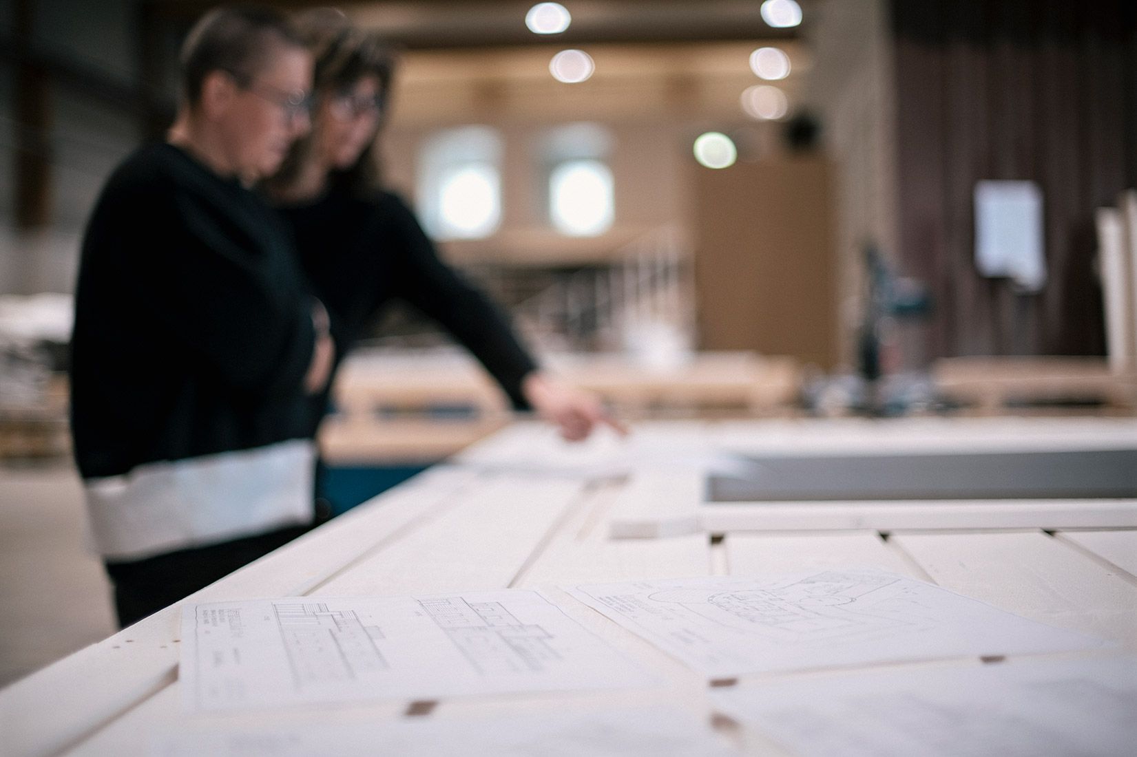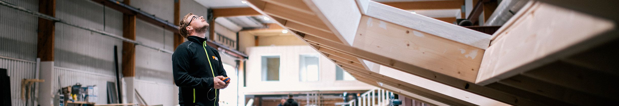 Montaget utförs av våra erfarna och duktiga snickare. Vi tillhandahåller utrustning, maskiner och lyftkran som behövs för att genomföra monteringen.